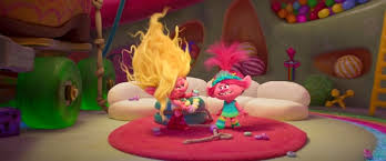 Après l'analyse sur l'effet de profondeur 3D, on se focalise désormais sur la palette des jaillissements 3D. On remarque rapidement que le niveau de débordements est très puissant et présent tout le long du film. De nouveau on retrouve la dotation 3D du 2e opus avec cette capacité à stretcher tous les personnages des premiers plans en permanence. Et le niveau de sortie 3D est bon car dans notre salle c'est souvent autour de 1m50 à 2m de sortie d'écran. Par contre petite remarque, cela manque de variété dans les éléments en débordements puisqu'il s'agit presque toujours des trolls, pas ou très peu d'éléments de décors qui sortent et c'est dommage. Autre reproche, les cadrages pourraient parfois être retravaillés, car du fait que les trolls ont tous cette grande chevelure verticale et haute, souvent on a la partie supérieure des cheveux qui se trouvent en windows conflicts, cad tronquée par l'écran et donc en court-circuit avec la 3D du reste de l'image. On aura aussi pas mal de travelling jaillissements et c'est bon point, ainsi que quelques passages avec des jaillissements de particules. Par contre en matière d'effets de projection cela reste très limité.